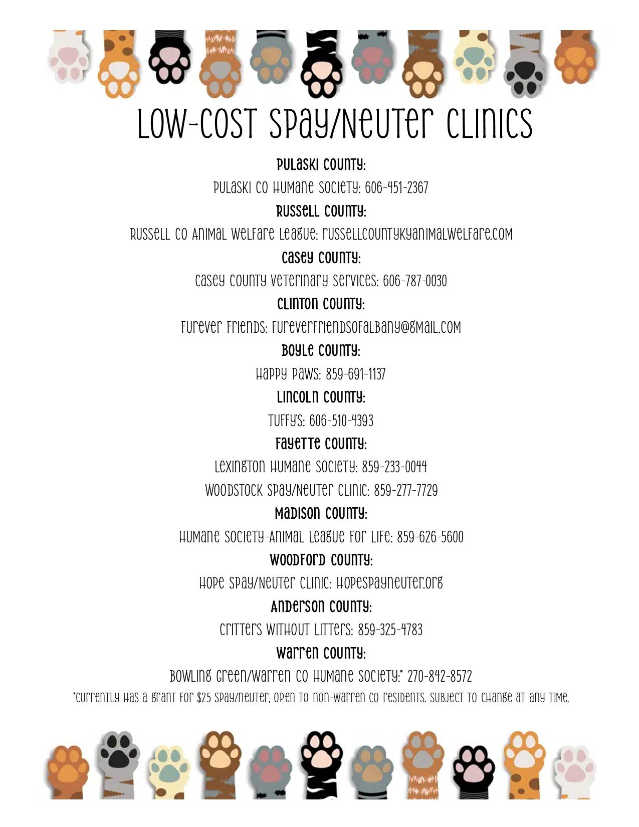 When: Our clinics are held based on our veterinarians’ availability. We work with numerous vets to alter as many pets as we’re able, though the dates of these vary.